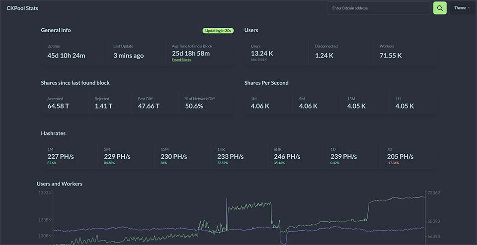 - Jděte na webovou stránku https://eusolostats.ckpool.org/